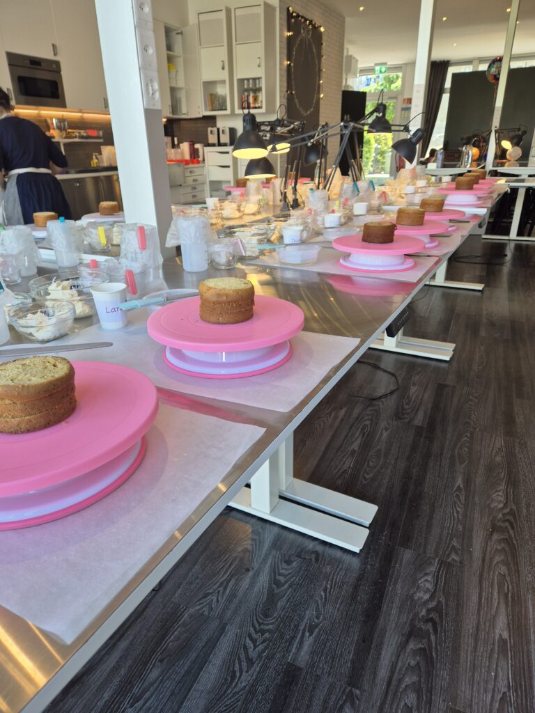 L’idée étant de réaliser un mini layer cake du découpage, à la décoration en passant par le fourrage et le montage. Naturellement vous avez à disposition des crèmes au beurre que vous allez colorer selon votre inspiration, des décorations en sucre, des fourrages appropriés, et tous les outils nécessaire à la déco d’un layer cake (spatule coudée, plateau tournant, poches à douille…..) Rien n’est laissé au hasard pour vous faire vivre un moment incroyable