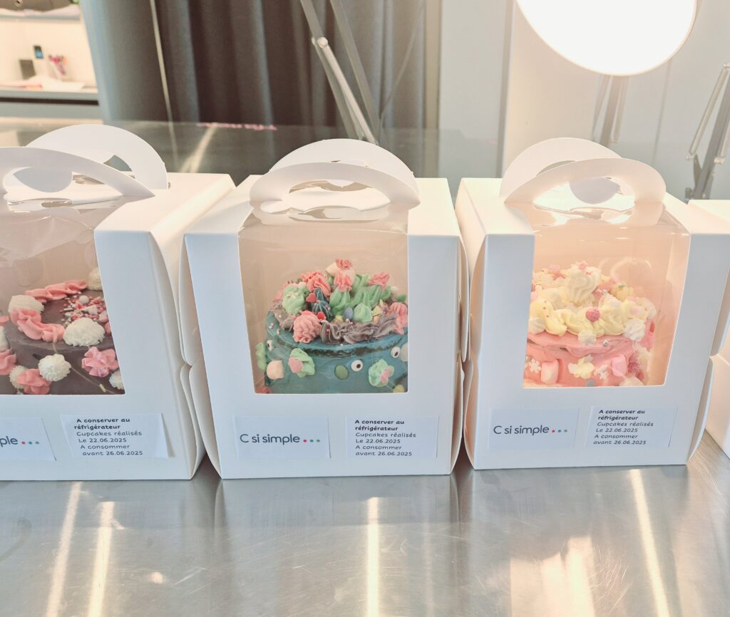 - On mets les pâtisseries dans les boîtes et l’atelier se termine
